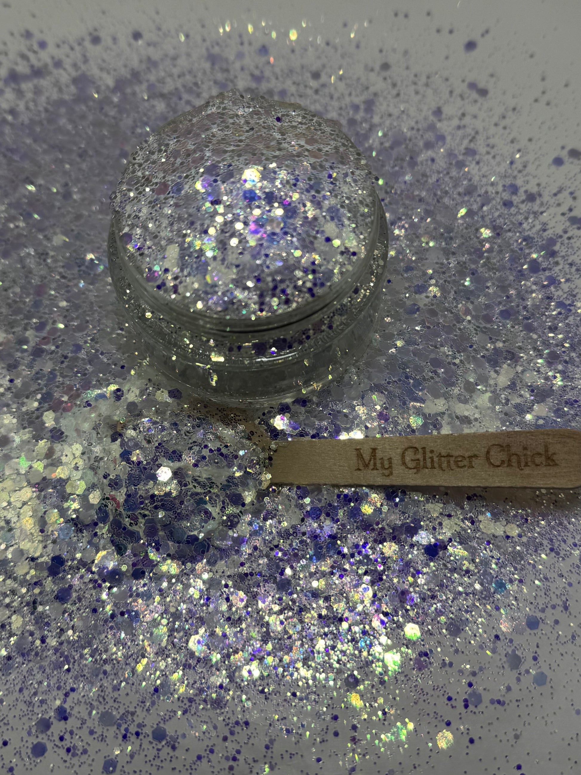 - Adelina is a beautiful white high sparkle iridescent chunky mix, a must have for your collection!