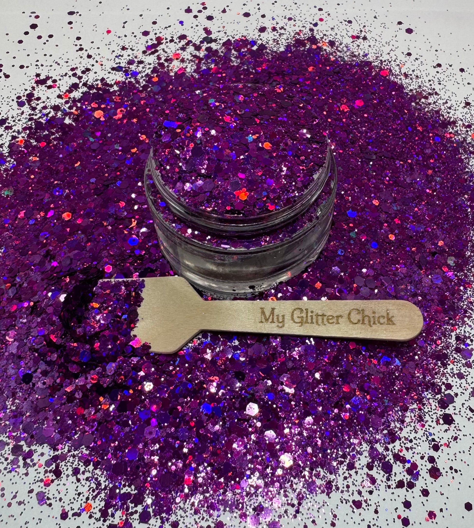 Bella is a stunning glitter holographic magenta chunky mix, check out the matching glitter Renesmee. A must have for your collection!