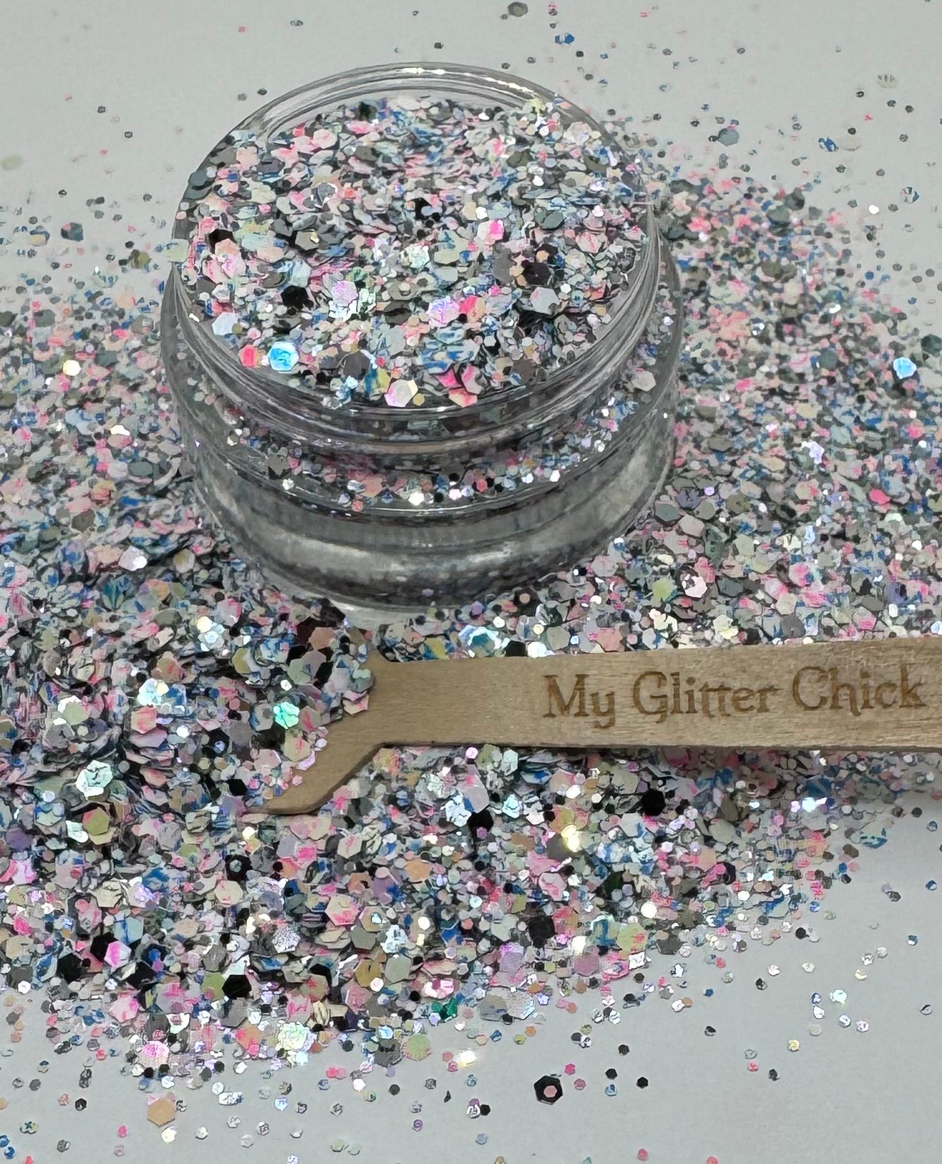 Dying For you is a beautiful Tie Dye Chunky Glitter Mix, a must have for your collection!
