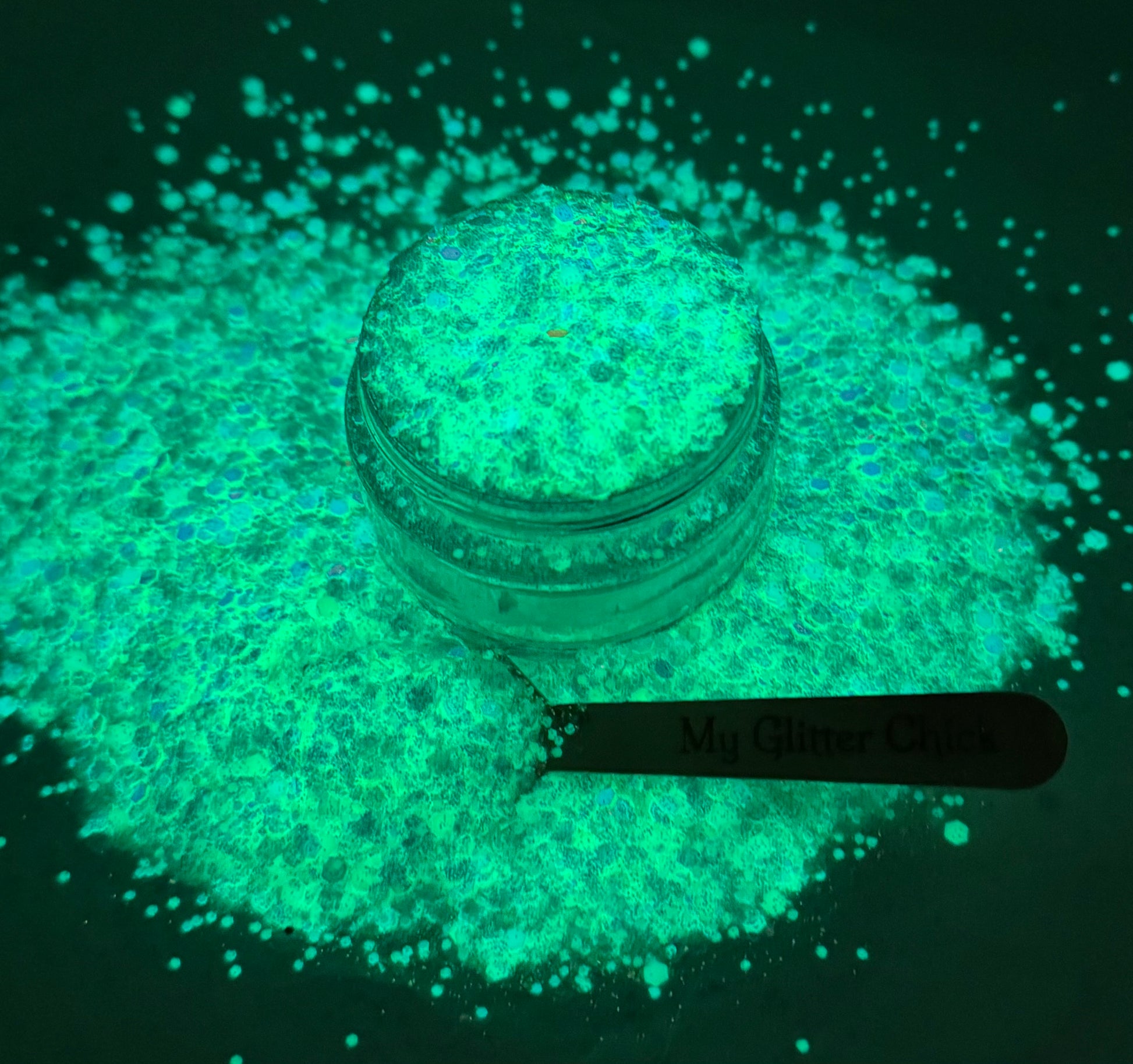 Ethereal Dream is a stunning chunky glitter mix that glows in the dark! A must have for your collection!