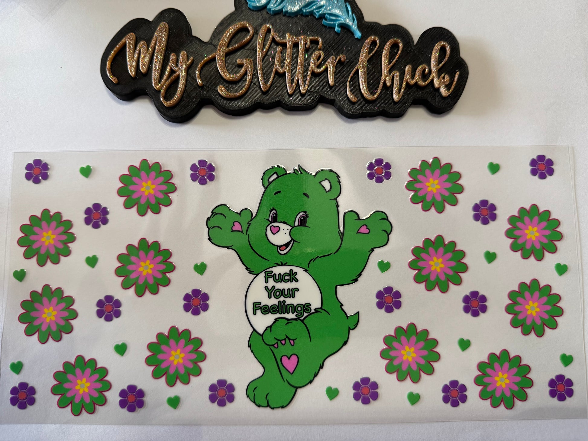 F your feelings green bear UVDTF wrap 026