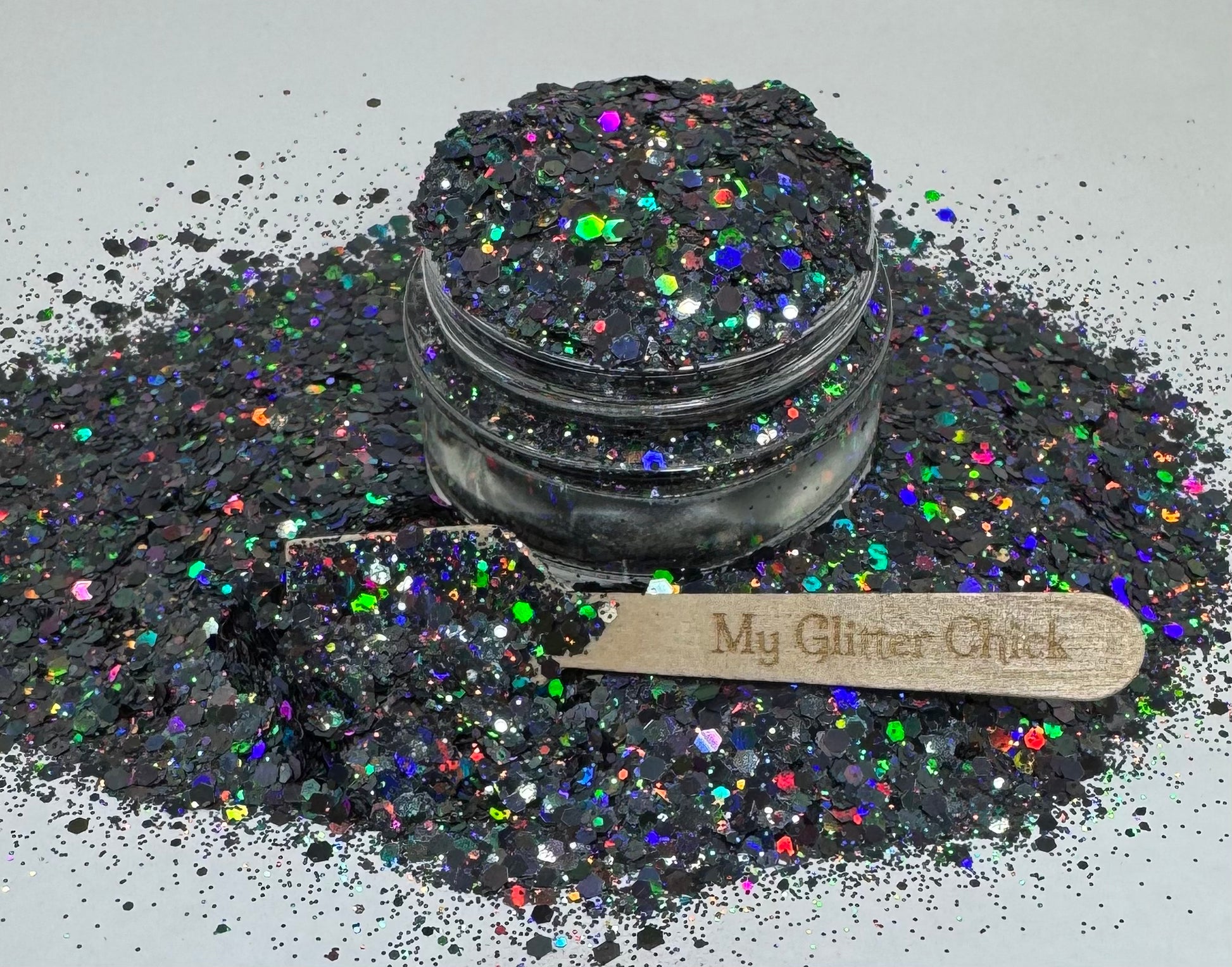 Gunpowder and Lead is a beautiful gray tone holographic chunky mix, a must have for your collection!