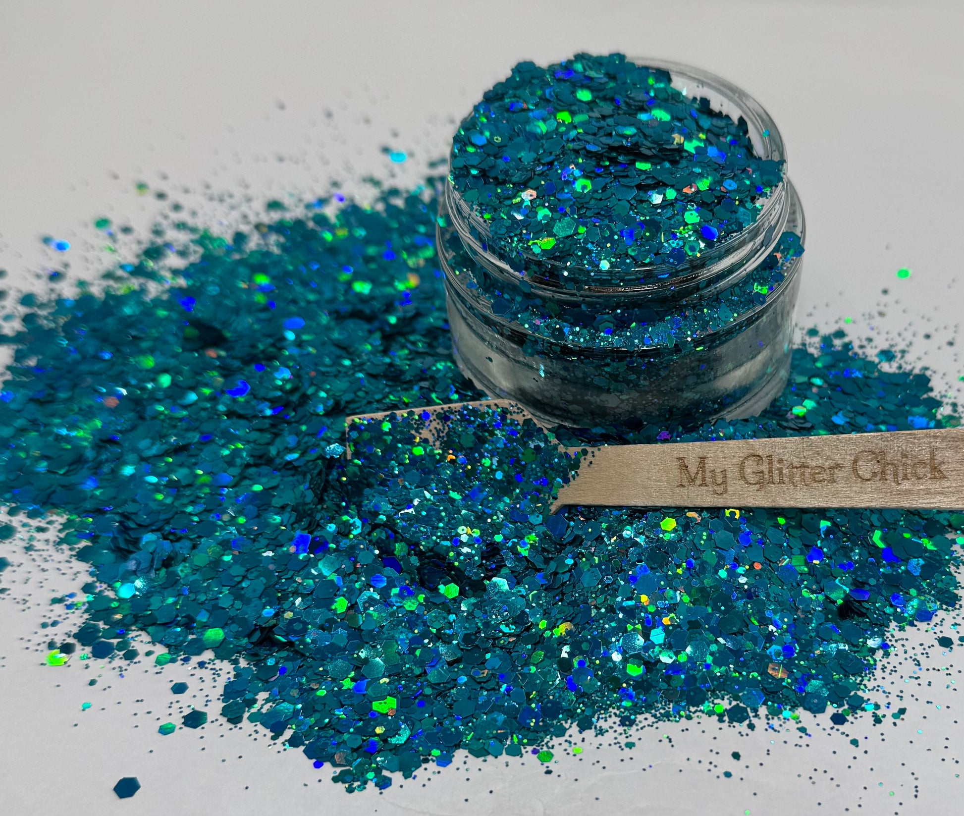 Pool Party is a fun blue/teal holographic chunky mix, a must have for your collection!