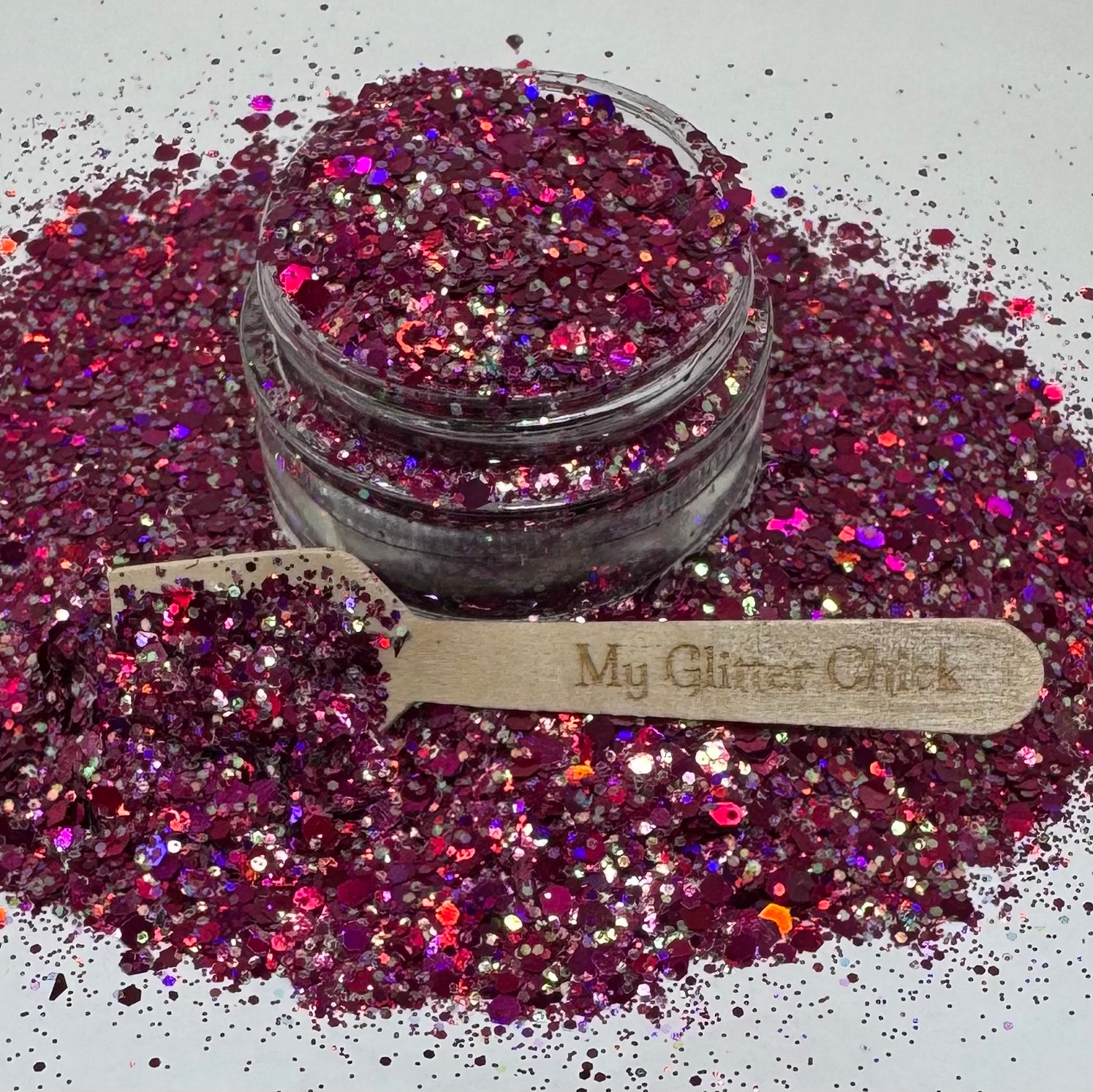 Razzberry Crush is a stunning custom Holographic chunky mix, check out the sister glitters Razzberry & Razzberry Kisses. A must have for your collection!